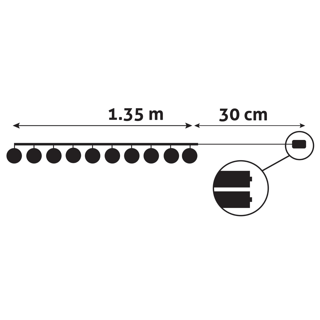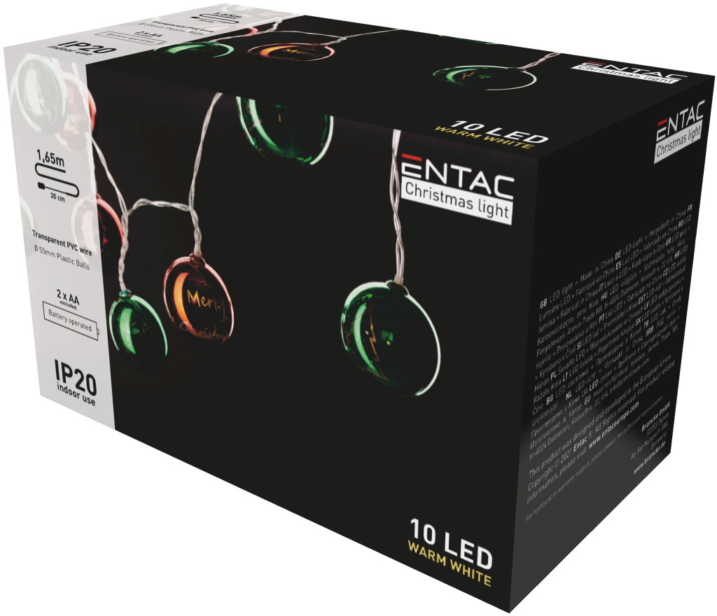 Dekorálja otthonát ünnepi hangulatban az Entac karácsonyi beltéri füzérrel, amely színes, 55 mm-es gömbökkel varázsol egyedi és meghitt légkört. A meleg fehér LED-ek finom fénye tökéletesen illeszkedik bármilyen dekorációhoz, így ideális választás karácsonyi díszítéshez. A 1,65 méter hosszúságú füzér 2xAA elemmel működik, így szabadon elhelyezhető bárhol a lakásban, ahol meghitt fényeket szeretne.