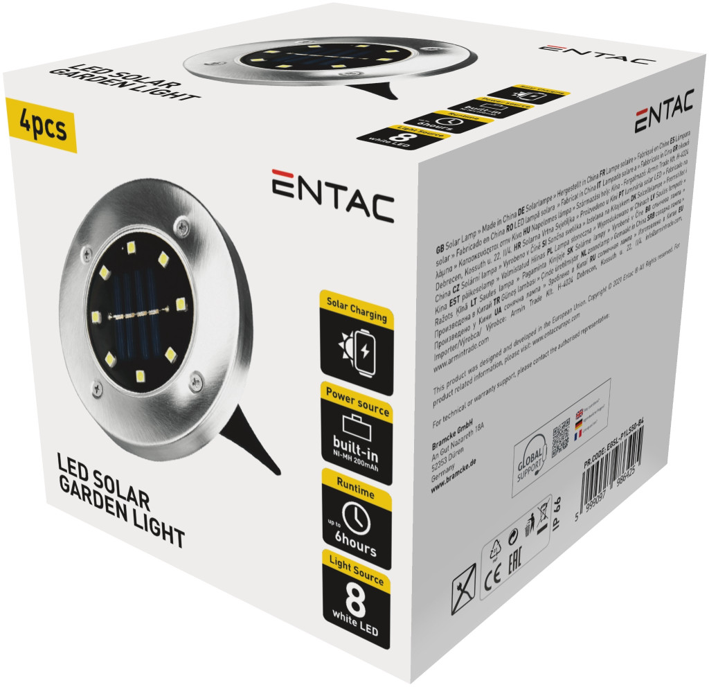 Az Entac kerti szolár taposólámpa ideális választás azoknak, akik diszkrét, mégis hatékony kültéri világítást keresnek. A 100 mm átmérőjű, kör alakú lámpa strapabíró műanyag házzal rendelkezik, így tökéletesen alkalmas taposólámpaként, akár gyalogos forgalomnak kitett helyeken is.