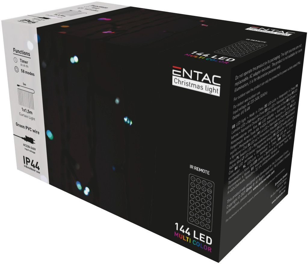 Tegye varázslatossá az ünnepi időszakot ezzel a színes Entac 144 LED-es RGB karácsonyi fényfüggönnyel! Ez a 1x1.5 méteres fényfüggöny színes RGB LED-ekkel van felszerelve, amelyek életteli és dinamikus megvilágítást biztosítanak. Az IP44-es védelemnek köszönhetően a termék kiválóan használható beltéren és kültéren egyaránt, így ideális választás ablakok, ajtók vagy akár teraszok dekorálásához. Az IR távirányító segítségével könnyedén váltogathat az 8 fényfunkció között, és időzítő funkcióval is rendelkezik, amely lehetővé teszi az automatikus kikapcsolást 4 vagy 8 óra elteltével. Ez a színes fényfüggöny tökéletes választás azoknak, akik egy egyedi és látványos dekorációval szeretnék feldobni az ünnepi hangulatot.