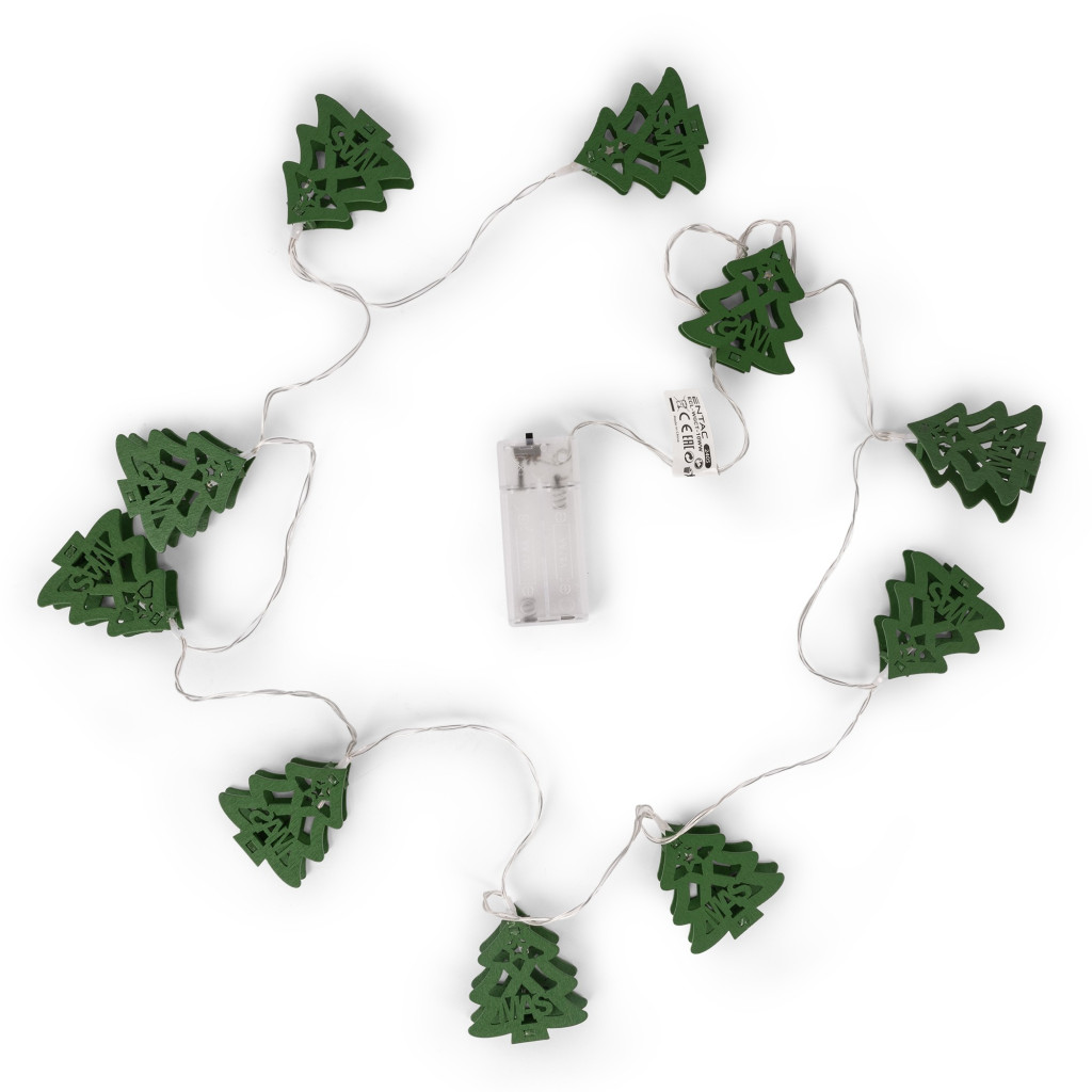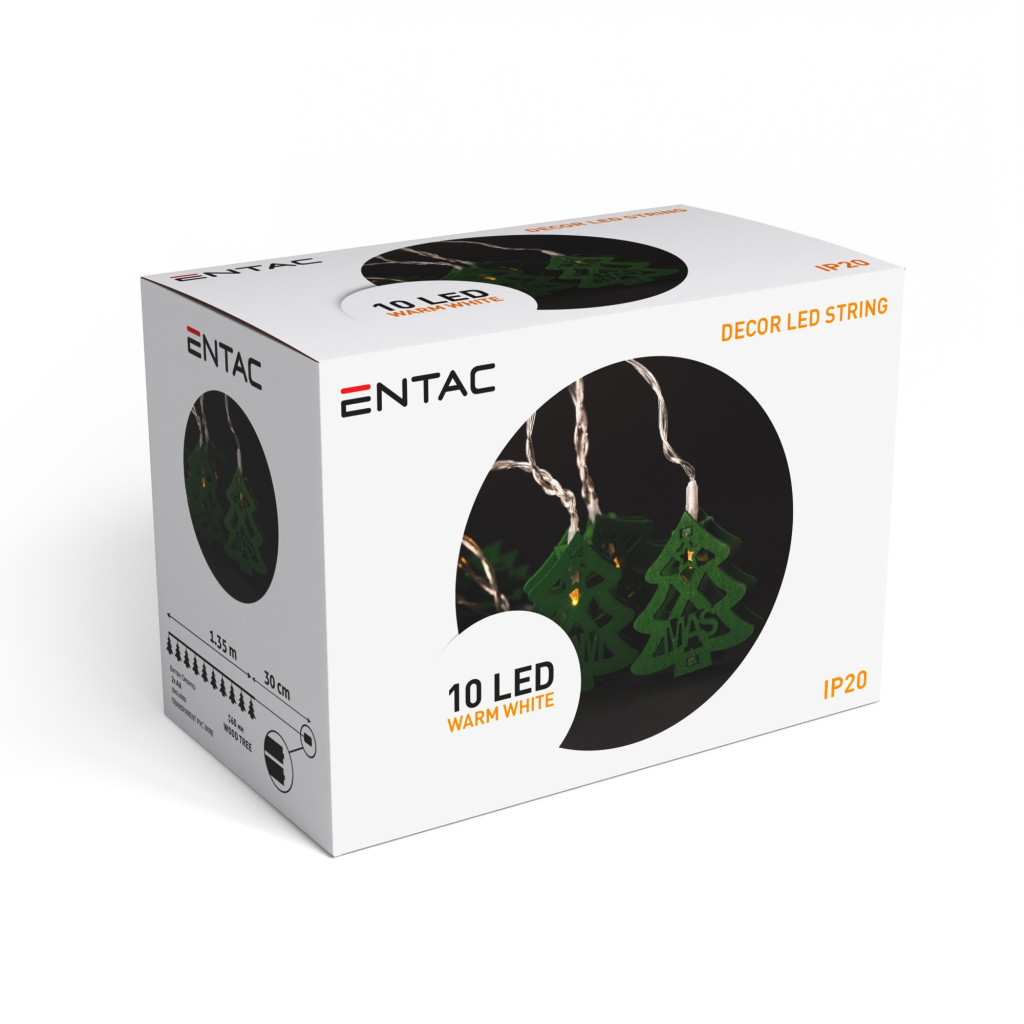 Hozza el otthonába a karácsony meghitt hangulatát ezzel az Entac beltéri karácsonyi füzérrel. A füzér 10 zöld, fából készült karácsonyfát tartalmaz, melyek meleg fehér LED fényekkel világítanak. Az 1,65 méter hosszú füzér kiválóan alkalmas ablakok, polcok vagy akár a karácsonyfa díszítésére is. Az elemes működés szabadságot ad a fények elhelyezésében, így bármely helyiséget karácsonyi hangulatba öltöztethet.