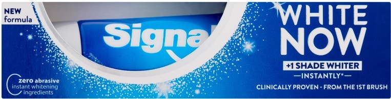 A Signal White Now fogkrém azonnal fehérebbé teszi a fogakat, akár egy árnyalattal. Azonnali fehérítő hatása klinikailag igazolt. Fejlett technológiája a színtudományon alapul: a White-Correct technológia a kék-zafír pigmentekkel úgy működik, mint a sminktermékek segít elfedni a fogak sárgaságát és fehérré tenni a fogakat.