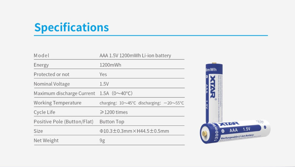Az XTAR 10440 (AAA) 1,5V egy új generációs, lítium-ion (Li-ion) újratölthető akku, amelynek egyik legnagyobb előnye a stabil 1,5V-os kimenet. Ez különösen akkor praktikus, ha olyan készüléket használsz, amely 1,5V-os AAA elemre van tervezve, és a 1,2V-os NiMH akkukkal (pl. 750–950 mAh) hamarabb jelentkezhet gyengébb teljesítmény vagy korai „low battery” jelzés.
