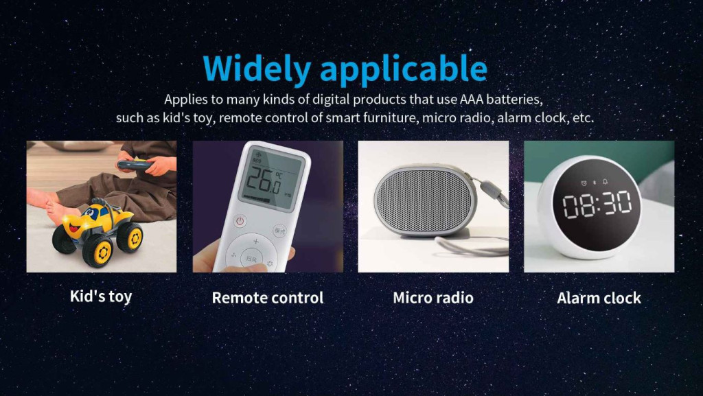 - Ajánlott felhasználás: AAA/1,5V-ra tervezett kompatibilis eszközök