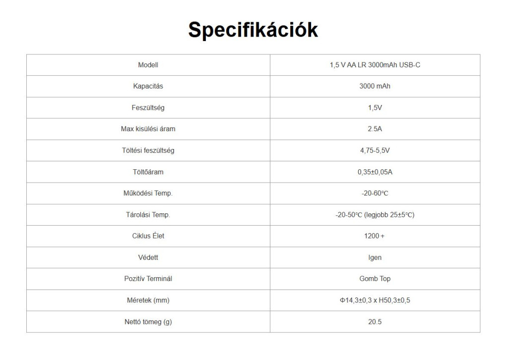 Fontos kompatibilitási tipp: ez 1,5V-os kimenetű AA méretű (14500) Li-ion akku. Nem ugyanaz, mint a klasszikus 3,7V-os 14500 Li-ion cella. Mindig olyan készülékhez válaszd, ami AA 1,5V elemmel/akkuval működik.