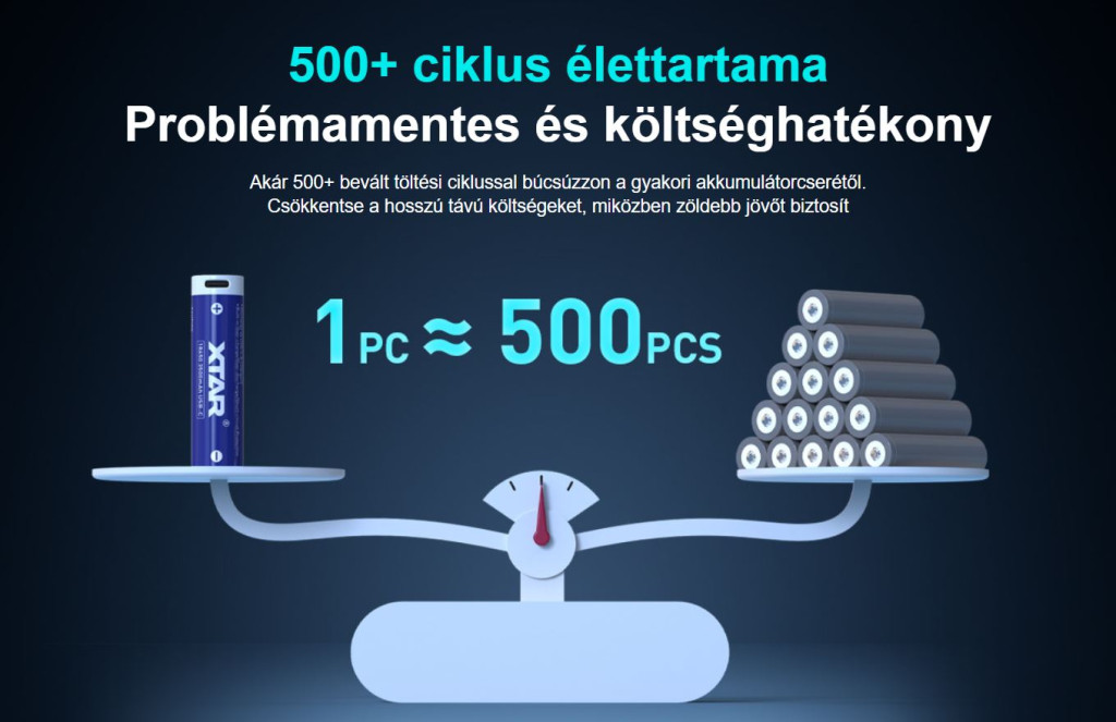 - Ciklus élettartam: 500+ (tartós használatra tervezve)