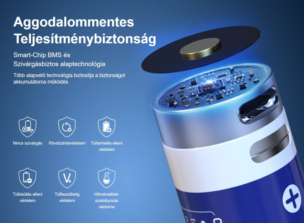 Kompatibilitás: a beépített USB-C és védelem miatt ez a cella hosszabb a standard 18650-nél (kb. 70,3 mm), és gombos (button top) pozitív érintkezővel készül. Emiatt nem minden 18650-es foglalatba fér be – vásárlás előtt érdemes ellenőrizni a készülék által megengedett hosszméretet és érintkező típust.