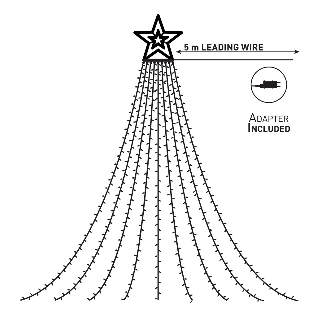 A 10×2,9 méteres méret elegendő nagyobb karácsonyfák, kültéri díszek vagy házfalak dekorálására is, a csillag alakú dísz pedig elegáns kiegészítése a kompozíciónak.