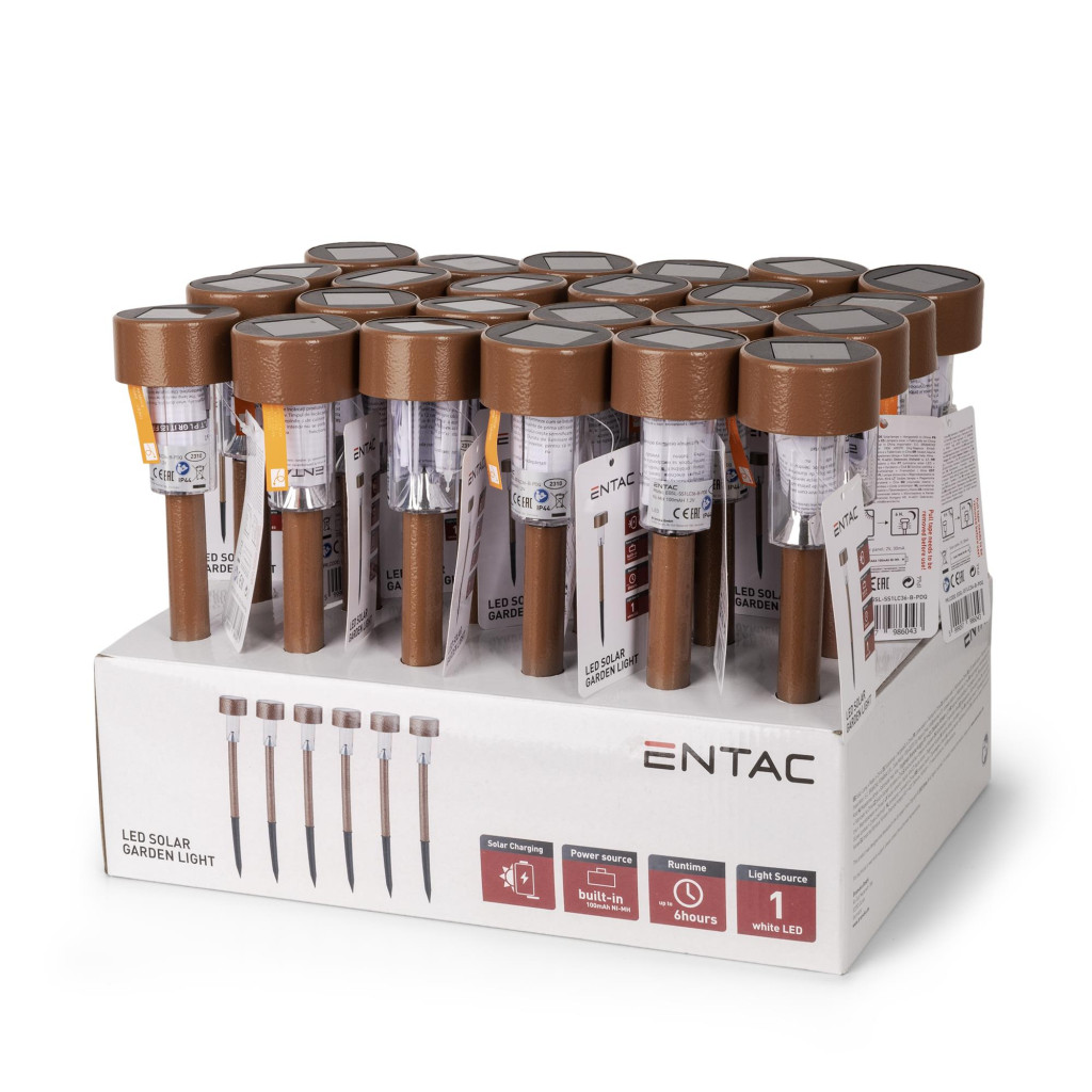 Az Entac rozsdamentes acél kerti szolár lámpa barna színű kivitelben esztétikus és praktikus megoldást kínál kerti utak, járdák, virágágyások vagy teraszok megvilágítására. A 360 mm magas lámpa elegáns megjelenésének köszönhetően természetesen illeszkedik a kerti környezetbe, a barna színű ház pedig különösen jól mutat természetes burkolatok vagy fa kiegészítők mellett.